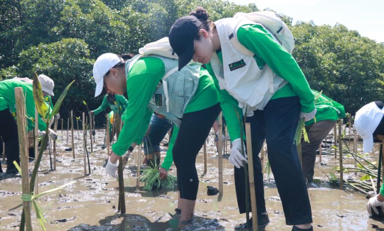 MAKASSAR, BERANDANEWS.NET – Di pesisir Kelurahan Tekolabbua, Kabupaten Pangkep, hamparan hijau mangrove kini semakin luas menutupi garis pantai. Bibit-bibit muda yang dulu hanya setinggi betis kini menjulang hingga dada orang dewasa. Di tengah suara ombak, puluhan relawan berseragam hijau muda menancapkan bibit baru ke dalam lumpur basah, membawa semangat yang sama: menjaga bumi dari tepi laut.
